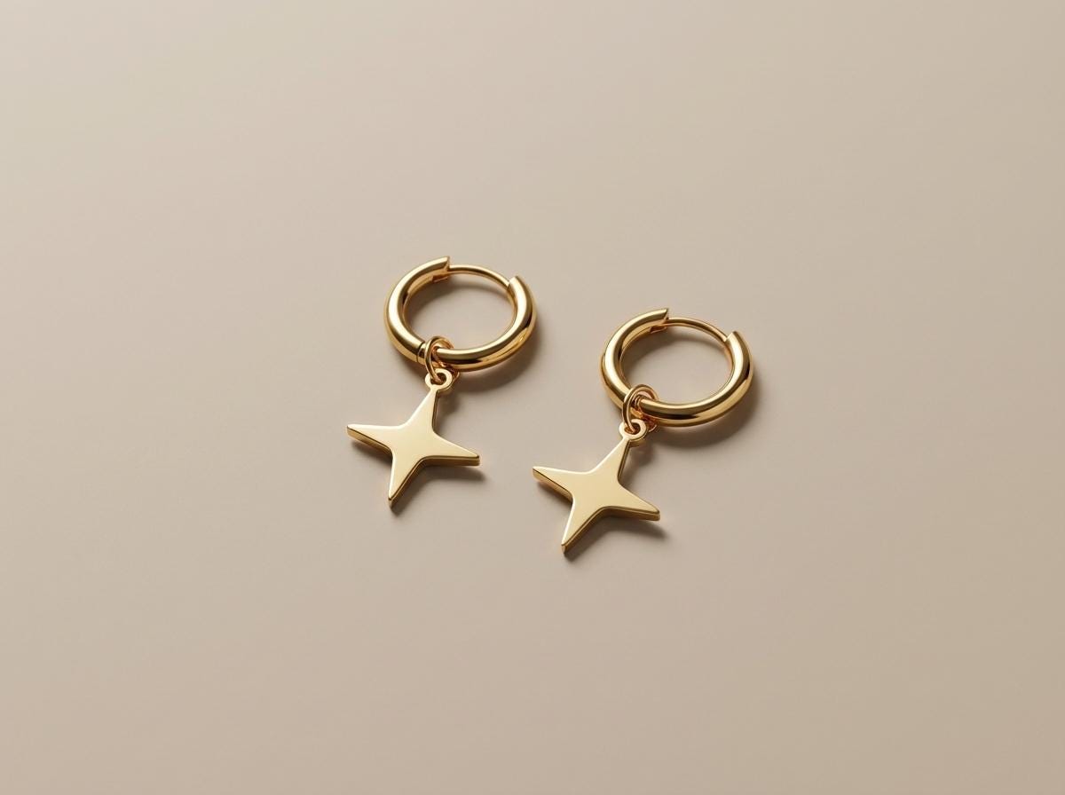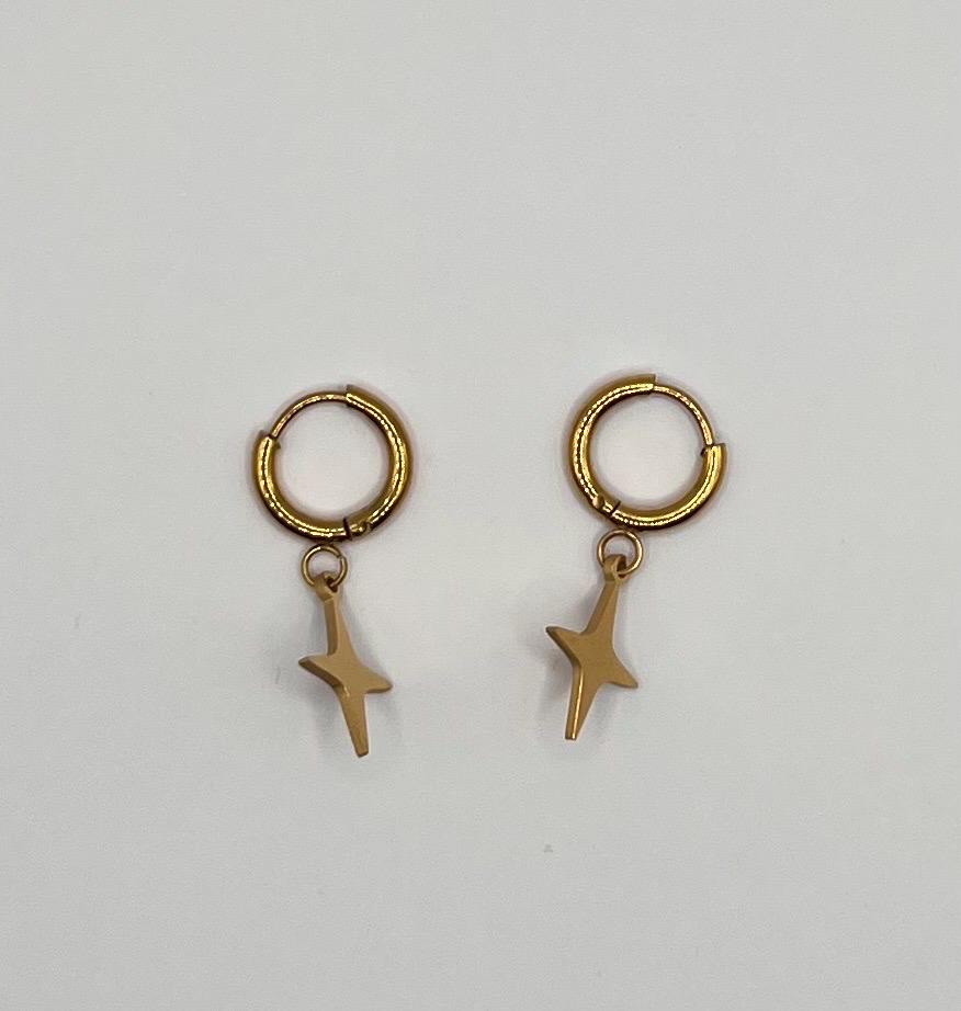 Deze goudkleurige oorbellen zijn gemaakt van roestvrij staal (RVS) en hebben een speels hangend sterretje. De kleine hoops bewegen soepel mee en geven een lichte, elegante uitstraling.