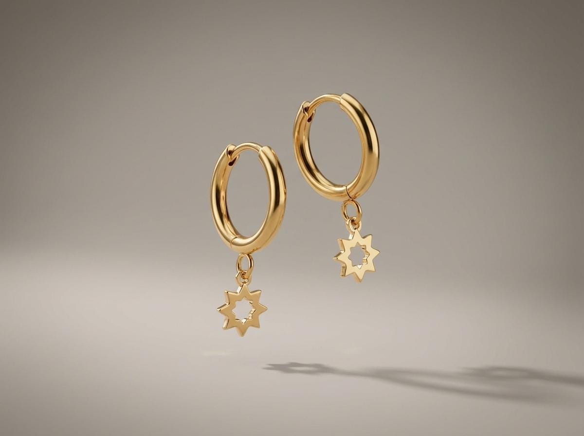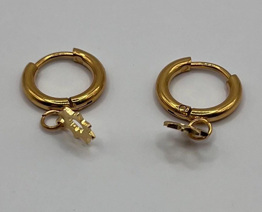 Deze goudkleurige oorbellen zijn gemaakt van roestvrij staal (RVS) en hebben een speels hangend zonnetje. De kleine hoops bewegen soepel mee en geven een lichte, elegante uitstraling.
