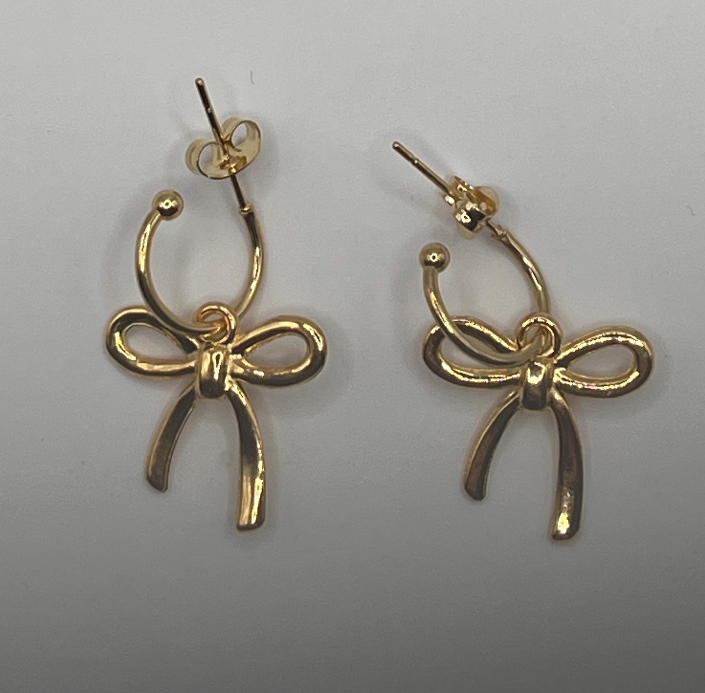 Gouden strik oorbellen Deze gouden strik oorbellen hebben een speels maar rustig ontwerp. De strikvorm geeft de oorbellen een subtiel detail, terwijl het minimalistische uiterlijk ze geschikt maakt voor dagelijks gebruik.
