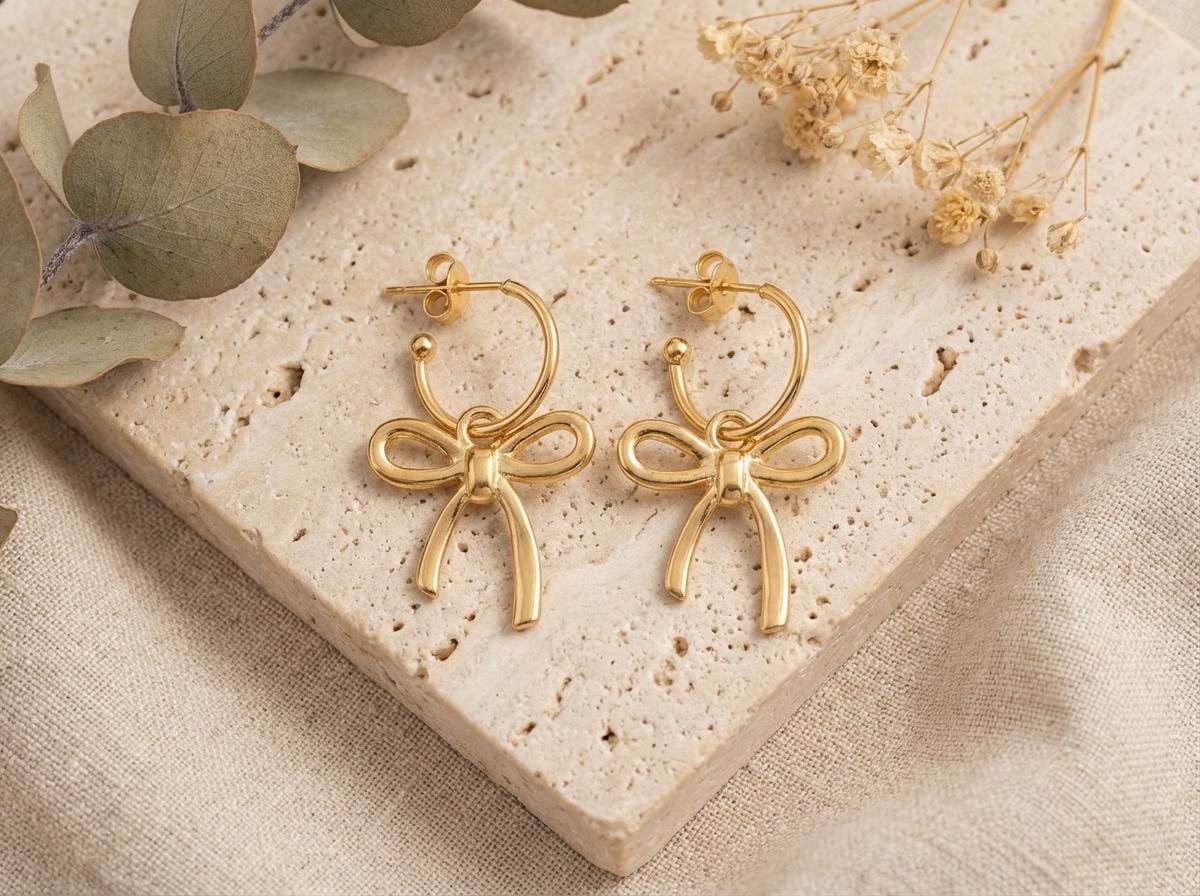 Gouden Strik Oorbellen, Minimalistische Oorbellen met Steker, Tijdloos Sieraad voor Elke Dag